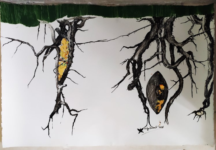 Sanatçılar son bir yıldır yaşamakta olduğumuz Covid-19 salgını nedeniyle yalnızlaşma, bireyselleşmenin düşüncelerimize ve bilinçaltımıza yoğunlaşmamıza neden olduğu düşüncesinde birleşirken ‘KÖK’lerimize dönüp bir bakıma aydınlandığımızı ve yeni bir geleceği olgunlaştırmanın temelini oluşturduğumuzu dile getiriyorlar.