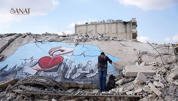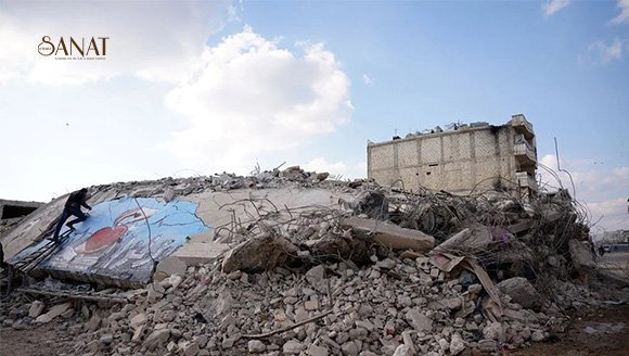 Yıllardır savaşı grafiti çalışmalarıyla dünyaya anlatan sanatçılardan Aziz Esmer, Selam Hamid ve Muhammed Enis Hamdun, bu kez de Kahramanmaraş merkezli depremlerin neden olduğu yıkımı ve yaşanan acıları yansıttı. Afrin’de depremler yüzünden yıkımların en çok yaşandığı Cinderes beldesinde buluşan sanatçılar, yıkılan bir binanın duvarına halkın çektiği acıları resmetti.