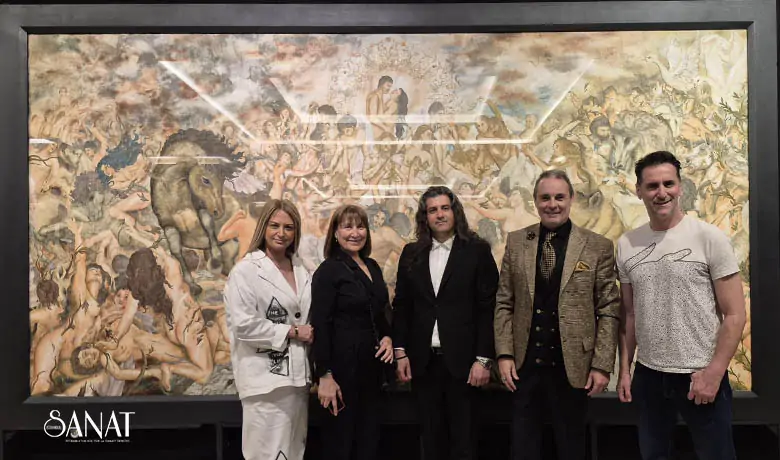Saadi’nin son yıllarda yaşanan savaşların son bulması adına ürettiği “Barış için Savaş” adlı dev eser, yaklaşık 10 metrekare büyüklüğünde. Otelin lobi katına yerleştirilen ve üzeri siyah bir örtü ile kaplanan eser, Hilton Istanbul Maslak Hotel Müdürü Vuslat Dağlı’nın açılış konuşmasının ardından alkışlar eşliğinde İlber Ortaylı ve diğer misafirler tarafından örtüsü aşağı doğru çekilerek açıldı.