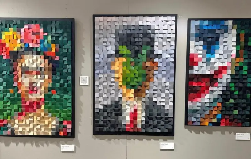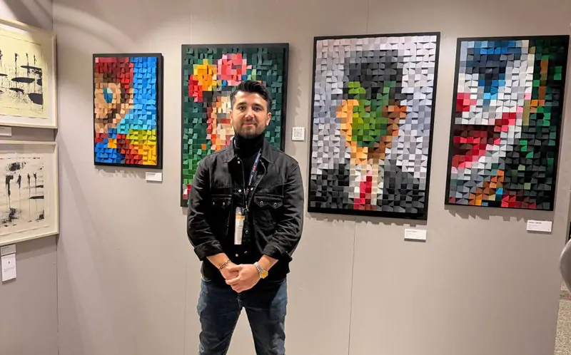 Ahşapla aram çocukluk döneminden beri iyi; aile çevremde marangozlukla ilgilenen insanlar olduğu için malzemeye yabancı değilim. Bu birikim, beni doğal olarak ahşaba yönlendirdi. Kullandığım yöntem, haftalar süren detaylı bir süreç gerektiriyor: Ahşapları küpler hâline getiriyor, tek tek kesiyorum. Zımparalıyorum, akrilik boyayla renklendiriyorum ve matematiksel hesaplamalarla yerlerine yerleştiriyorum. Bu yöntem zaten görsel olarak güçlü bir dil sunuyor; ancak işin asıl karakterini oluşturan şey benim renk seçimlerim, dokuyla kurduğum ilişki ve portreyi yorumlayış biçimim.