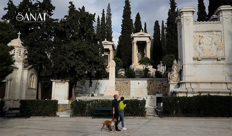 Mezarlıkta, ebedi uykudaki isimler kadar mezarların şekli de dikkati çekiyor. Neoklasik Dönem’in izlerini taşıyan mezar yapıları, 19’uncu yüzyıl Yunan heykel sanatında gelinen noktayı da yansıtıyor. Yunanistan’ın önde gelen ve çoğu Tinos Αdası’ndan heykeltıraşları Halepas, Viçaris, Fitalis, Vidalis, Filipotis’in eserleri bu mezarlıkta yer alıyor. Yunan heykeltıraş Yannulis Halepas’ın başyapıtlarından “Uyuyan Kadın” heykeli de burada bulunuyor. Ünlü kişilere ait mezarların üzerindeki yazılar da edebi bir hassasiyetle yazıldığı için mezarlık, sanat ile tarihin buluşma noktasına dönüşüyor.