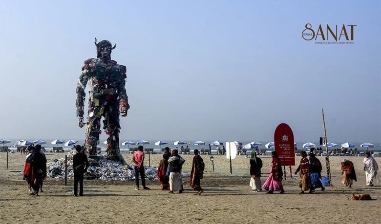 Bangladeş’in sahil kenti Cox’s Bazar’da plastik atıklardan 13 metre uzunluğunda canavar heykeli oluşturuldu. Plastik kirliliğinin önlenmesi konusunda kamuoyu bilincini artırmak amacıyla Cox’s Bazar, Teknaf ve St. Martin sahillerinden toplanan yaklaşık 8 ton plastik atığın kullanıldığı dev heykelin yapımı 7 gün sürdü.