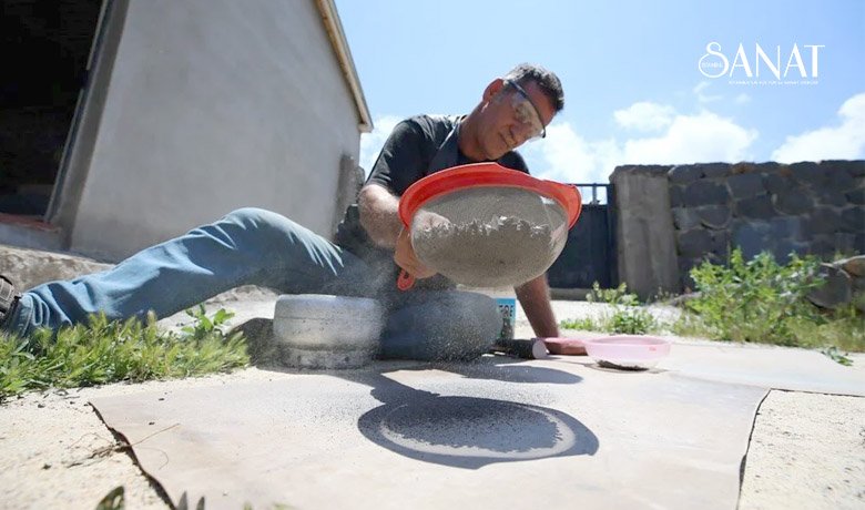 Kalemle çizdiği fonun üzerine silikonla taş tozunu döken Kılıç, günlerce, bazen de aylarca verdiği emek sonucu eserini ortaya çıkarıyor. Doğadan topladığı renkli taşları el emeğiyle toza dönüştürerek resimler yapan Bingöllü Ali Rıza Kılıç’ın, köyündeki atölyesinde hazırladığı eserleri 16 ülkedeki sanatseverlere ulaştı.