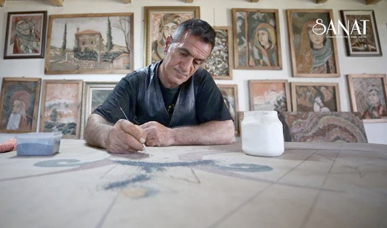 Taş tozunu, kalemle çizdiği fonun üzerine silikonla sabitleyen Kılıç, günlerce, bazen de aylarca verdiği emek sonucu eserini ortaya çıkarıyor.