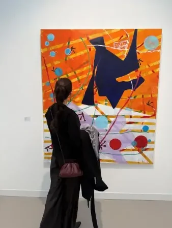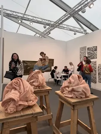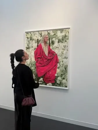 Sabah sisinin içinde yürürken, gökyüzünün grisi parkın yeşiline karışıyordu. Her şey pastel bir ışığın altında, sessizce birbirine erimiş gibiydi. İlk olarak Pace Gallery’ye uğradım —William Monk’un tuvalleri neredeyse mekânın kendisini resmediyordu. Biraz ileride Gagosian’ın standı —boşluk, ritim, netlik… Sanki bir bina planına bakar gibiydim. Ancak en çok ilgimi “Focus” bölümündeki genç galeriler çekti.