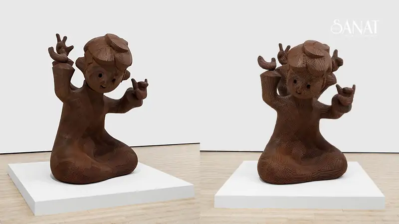 En Iwamura, Japon felsefesinden, özellikle de varlık ile yokluğun arasındaki boşluk anlamına gelen ‘Ma’ kavramından esinleniyor. Heykelleri ritüel, mizah ve belirsizliği bir arada barındırıyor. İsmi “Neo Jomon: Yeraltının Prensi” olan bu eser, hem bir koruyucu hem de bir ruh gibidir; mekâna tepki veren bir diyaloğun içinde var olur. Bu formlar, çevreyle bütünleşen bir mekânsal deneyim yaratıyor; sözle değil, duruşları ve ağırlıklarıyla ifade buluyor.