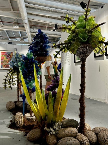 İkinci sürpriz, tekniğini iyi bildiğim, oldukça zor bir sanat olan ve Türkiye’de pek bilinmeyen emaye sanatının mükemmel örnekleriyle karşılaştım. Limoge’da ziyaret ettiğim emaye sergisinde -ki bu sanat orada çok yapılmakta- Emaye Müzesi’nin dahi olduğu bir yer olması sebebiyle çok iyi emaye eserleri izlemiştim. Cahide Erel’in emaye eserleri, tekniğe çok hakim olduğu anlaşılan, olağanüstü çalışmalardı. Cam sanatı konusunda bir duayen olan Cahide Erel’in dış mekan cam eserleri ise büyüleyici büyük ebat eserlerdi, görülmeye değerdi.