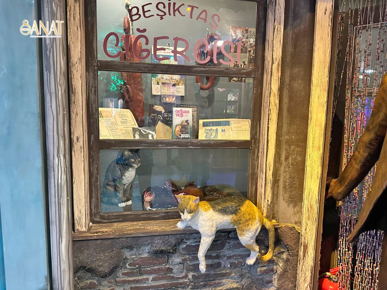 Müzede sadece kediler yok; çocukluğumuzun çizgi film karakterleri, masalları, oyunları, çeşitli oyuncaklar, kedili figürler, biblolar da yer alıyor. Sunay Akın, Nuh’un Gemisi’ni çocuklar için tasvir etmiş ve ortaya şahane bir görüntü çıkmış. Kediseverlerin ve çocukların daha çok ilgisini çekecek olan Kedi Müzesi ‘nde, kedili pul koleksiyonları çok iyi düşünülmüş. Kedileri seviyor ama korkuyorsanız çekinmeyin, içeride canlı kedi yok.