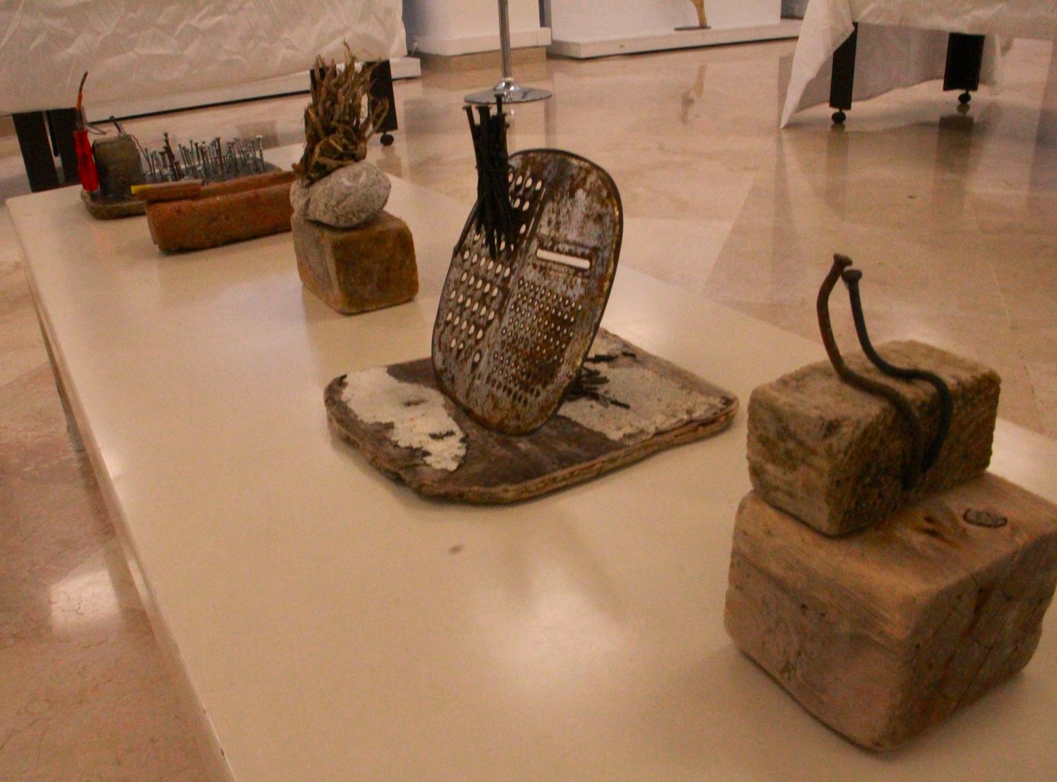 Sergide Berberoğlu, ırmakların denize sürüklediği ağaç, odun ve sandal parçalarını, cam seramik ve deniz kabuklarını değerlendirip oluşturduğu eserleri yer aldı. Berberoğlu, doğada şekillenen parçaları herhangi bir boya ya da metal malzeme kullanmadan birleştirmeye özen gösterdi.