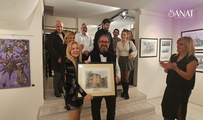 Serginin açılışında sürprizler de vardı. Bunlardan biri, serginin katılımcılarından Alp Gür’ün uzmanlığı olan teknik ile Galeri İdil binasını yarattığı çalışmasını Galerist İdil Yılmaz’a hediye etmesi oldu.