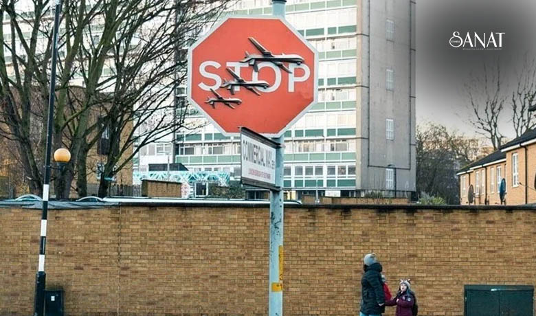 Son dönemde Ukrayna’nın Borodyanka kentinde ortaya çıkan duvar resimleriyle gündeme gelen gizemli sokak sanatçısı Banksy, Londra’nın güneyinde bulunan bir caddeye yaptığı eseri bıraktı. Yeni eserini sosyal medya hesabından duyuran Banksy’nin son çiziminde, İngilizce “Dur” anlamına gelen “STOP” yazılı trafik levhasının üzerinde üç adet insansız hava aracı benzeri uçak görülüyor.