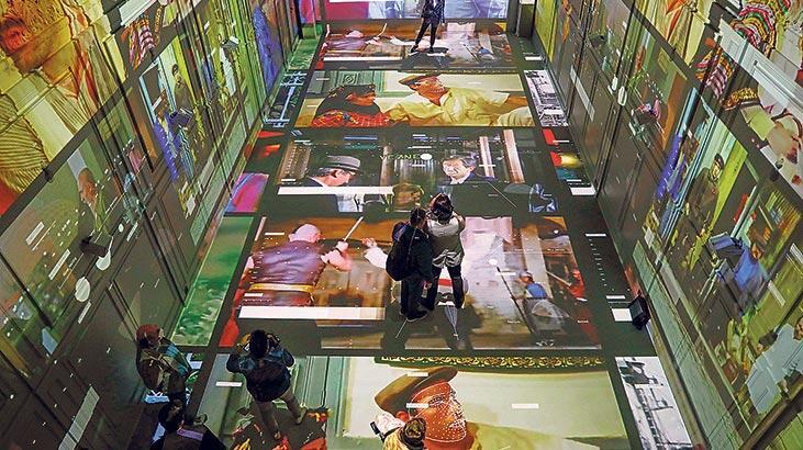 Sanatçı Refik Anadol’un “Alkazar Rüyası” isimli interaktif enstalasyonu izlemek için gelen sanatseverler mekanın önünde uzun kuyruklar oluşturuyor.