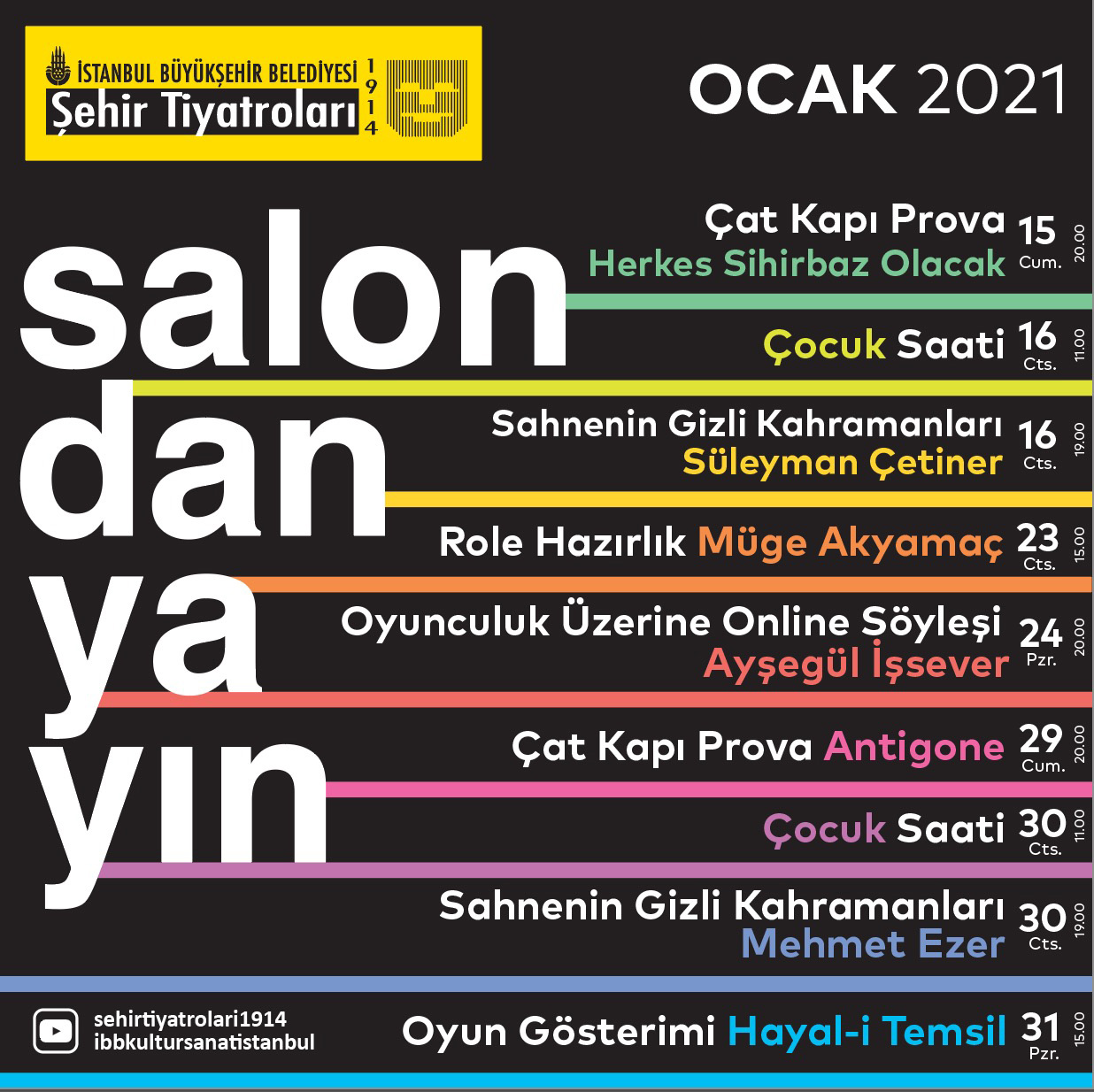 İBB Şehir Tiyatroları’nın Ocak ayında kurumsal sosyal medya hesaplarından sanatseverlerle buluşturacağı söyleşi, okuma provası ve oyun gösterimi programları: