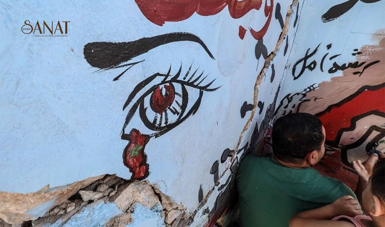 İdlib’in kuzeyindeki Binniş beldesinde, Suriye ordusunun saldırıları sonucu yıkılan bir binanın duvarına deprem yaşayan Fas halkının çektiği acıları resmetti.