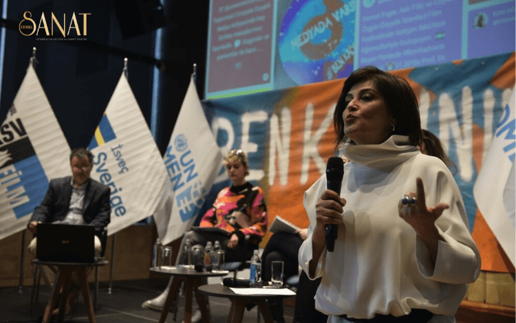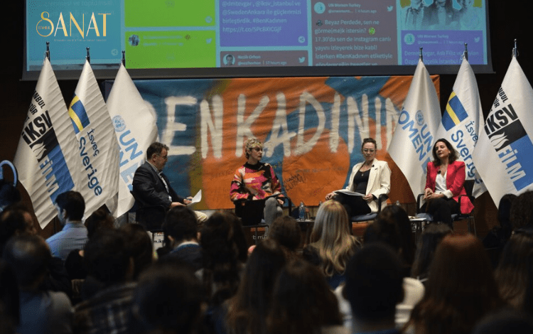 Birleşmiş Milletler Kadın Birimi (UN Women) ve İKSV ortaklığında 41. İstanbul Film Festivali kapsamında 13 Nisan Çarşamba günü gerçekleşen Beyaz Perdede #BenKadınım söyleşisi film endüstrisinde kadın temsili ve toplumsal cinsiyet eşitliğini masaya yatırdı. Yapı Kredi Kültür Sanat Vakfında düzenlenen, UN Women İyi Niyet Elçisi Oyuncu Demet Evgar, Film Yapımcısı Aslı Filiz ve Yönetmen Ceylan Özgün Özçelik’i bir araya getiren söyleşiye üniversite öğrencileri katıldı. Prof. Dr. Nezih Orhon moderatörlüğünde gerçekleşen söyleşi kadın hikayelerinin beyaz perdede ne kadar yer bulduğu, filmlerde kadınların nasıl konumlandırıldığı ve toplumun dönüşmesi için beyaz perdede atılması gereken adımlar hakkında nesiller arası bir tartışma ortamı sağladı. Canlı yayınla 25 bini aşkın izleyiciye ulaşan söyleşi İsveç Uluslararası Kalkınma İş Birliği Ajansı aracığılıyla İsveç mali desteği ile düzenlendi.
