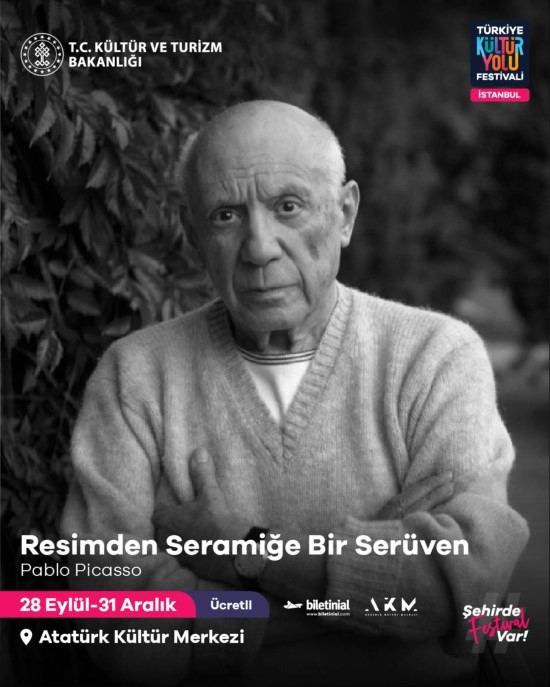 Dünyanın en ünlü ressamlarından Pablo Picasso’nun eserleri, İstanbul Kültür Festivali kapsamında 28 Eylül-31 Aralık tarihleri arasında Atatürk Kültür Merkezi’nde sergilenecek. Sergi; Pablo Picasso’nun gravürleri, çizimleri, posterleri, litografileri ve fotoğraflarından oluşan, tamamı orijinal ve mirasçıları tarafından onaylanmış 170 parçayı bir araya getirecek. Pablo Picasso’nun kendisine eşlik eden kadınları konu alan eserlerinin yanı sıra Françoise Gilot ve Dora Maar gibi kadınların sanatsal çalışmaları da sergide olacak. Sergide, 20. yüzyıl dehasının samimiyetine işaret eden ve kadınlarla olan ilişkilerine tanıklık eden çok sayıda fotoğraf, ilk defa gün yüzüne çıkacak.