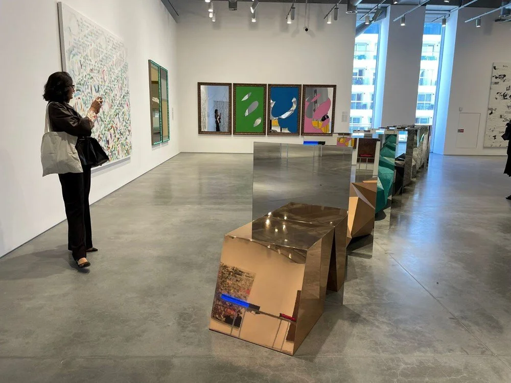 Müzenin yeni yapısına özel olarak davet edilen Danimarkalı sanatçı Olafur Eliasson, mekana özgü bir yerleştirme üretti. Üç parçadan oluşan, “Senin beklenmedik seyahatin” adlı yapıt, binanın merkezindeki merdiven boşluğunda farklı katlara yayılıyor. Refik Anadol’un “Sonsuzluk Odası: İstanbul Boğazı” adlı mekana özgü yerleştirmesi ise İstanbul Boğazı’ndaki anlık meteorolojik dönüşümle ilgili veri ve temalara odaklanıyor. Yapıt, 360 dereceli aynalı bir odada anlık verileri dijital teknolojiler kullanarak işliyor ve hareketli görseller yaratıyor. Yeni müze binasının dış etkinlik alanı, heykel sanatının önemli örneklerine ev sahipliği yapıyor. Adrian Villar Rojas’ın 14. İstanbul Bienali kapsamında Büyükada’da sergilendikten sonra İstanbul Modern’in koleksiyonuna dahil edilen “Tüm Annelerin En Güzeli (I)” adlı yapıtının yanı sıra Richard Deacon’un “Ev Modeli”, Anselm Reyle’nin “Yeraltı Dünyasının Üstünde” ve “Toz Çökerken”, Yılmaz Zenger’in “Bence Ayça” ve Selma Gürbüz’ün “Avrupalılar” başlıklı çalışmaları izleyiciyle buluşuyor. Anthony Cragg’in “Runner” adlı yapıtı İstanbul Modern’in giriş platformunda yer alırken, Richard Wentworth’ün “Sahte Tavan” adlı yerleştirmesi ise zemin kattaki lobide, Antrepo binasından sonra yeniden ziyaretçilerle bir araya geliyor.