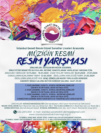 İstanbul Sanat Işıktır Derneği, Kadıköy merkezli bir sanat kuruluşu olarak, Milli Eğitim Bakanlığı İl Milli Eğitim Müdürlüğü ve Valiliğin onayı ile “Müziğin Resmi” konulu resim yarışması düzenledi. Bu özel projenin amacı, genç yeteneklere maddi ve manevi destek sağlayarak, sanatın gücüyle onları buluşturmak.