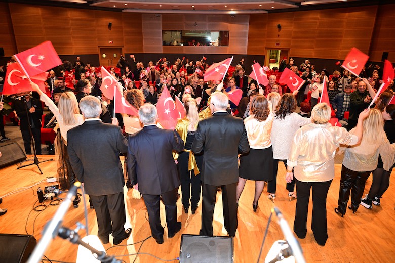 Major Müzik Topluluğu’nun şefi Oktay Çetin’in bestelediği ve güftesini yaptığı 100. Yıl Marşı, salondaki herkesi ayağa kaldırdı. Türk bayraklarıyla süslenen salon, birlik ve beraberlik duygularıyla dolup taştı. 7’den 70’e tüm konuklar, ellerindeki Türk bayraklarıyla marşa eşlik etti. Birlik ve beraberlik duygusu, sanatın ve müziğin coşkusuyla birleşerek unutulmaz anlar yaşattı. Marşın ardından kısa bir ara verilerek, izleyicilerin duygusal yoğunluğunu dengelemeye imkân tanındı.