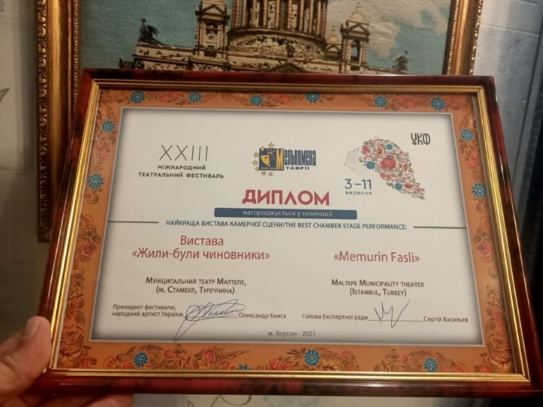 Festivalde Maltepe Belediye Tiyatrosu,“Memurin Faslı” isimli modernize edilmiş orta oyunuyla sahne aldı. Yazar ve senarist Coşkun Irmak’ın yazdığı müzikli oyunda,günlük yaşam dertleri seyirciyle buluştu.Maltepe Belediye Tiyatrosu Genel Sanat Yönetmeni Kubilay Erdelikara festivalden iki ödülle dönmekten gurur duyduklarını ifade ederek “Festivale Ukrayna’nın farklı şehirlerinden ve 10 ülkeden tiyatro grupları katıldı. Festivalde geleneksel Türk tiyatrosu özelliklerini taşıyan oyunumuzla dikkat çektik. Geleneksel tiyatromuzla bunu başarmak mutluluk verici. 50 oyun arasından en iyi oyuncu grubu ödülünü aldık. Tüm ekibe, tiyatromuzun kurulmasını teşvik ederek verdiği destekten dolayı Maltepe Belediye Başkanımız Sayın Ali Kılıç’a teşekkür ederiz.” dedi.
