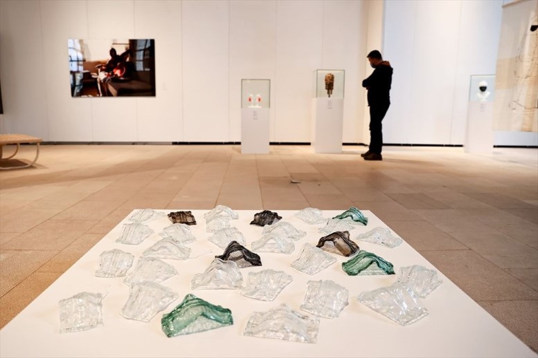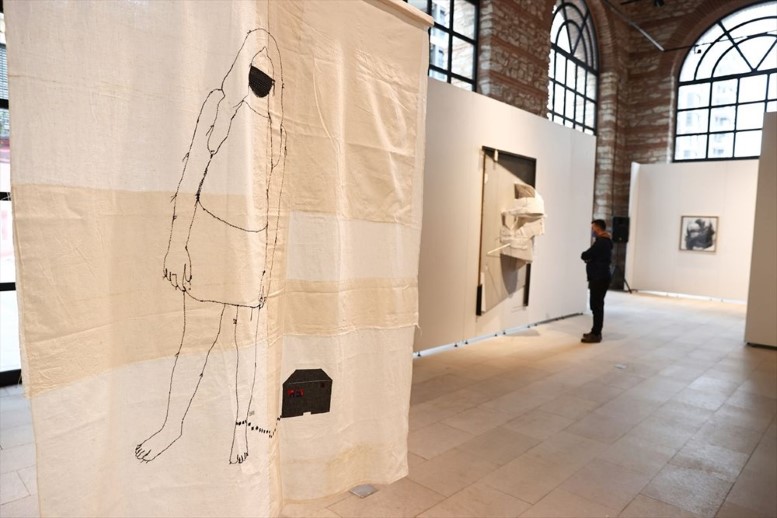 Salgın tedbirlerinde açılan sergide, 20 farklı sanatçı ve tasarımcının geçmişten bugüne insan hayatındaki rolünü ve salgının etkisiyle toplumları nasıl kontrolü altına aldığını anlatan eserler yer alıyor.