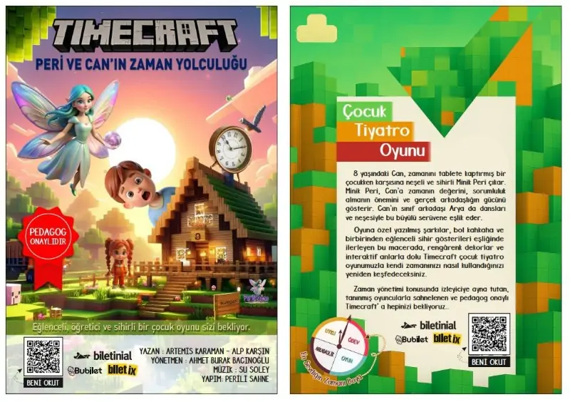 Kimi oyunlar sadece izlenmez, hatırlanır. “TimeCraft” da onlardan biri olabilir; çünkü çocuklara yalnızca eğlenmeyi değil, zamanı anlamayı da öğretiyor. Detaylı bilgi ve gösterim takvimi için; www.perilisahne.com