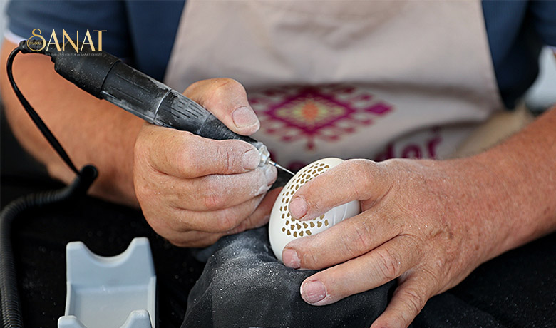 Kültür ve Turizm Bakanlığı “Somut Olmayan Kültürel Miras Taşıyıcısı” 64 yaşındaki Rıza Yaman, yumurta kabuğundan sanat eserleri çıkartıyor.