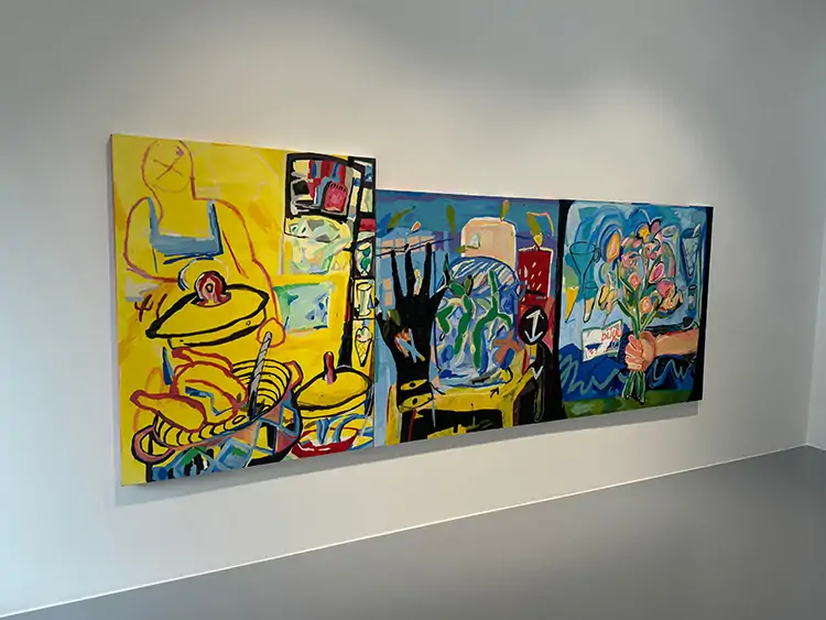 Adalı, çalışmalarında kullanılan renklerle ve objelerle ilgili ise şu bilgileri verdi, “Serginin renkliliği, hayatın trajedisine karşı bir başkaldırı. Gündelik hayattan objeler kullanmamın sebebi, haz deneyimlerini uzaklarda değil, tam da oturduğumuz masada, içtiğimiz kahvede veya dokunduğumuz bir taşta aramam. Sergi, hayata karşı son derece açık bir tavır sergiliyor. Yolun, durağın, bahçenin, evin ve bedenin içindeki küçük olayları merkeze alıyor. İzleyiciye, ‘Bak, burası sıradan, sıradanlığın her parçası bir sanat yapıtına dönüşebilir.’ mesajını veriyor.”