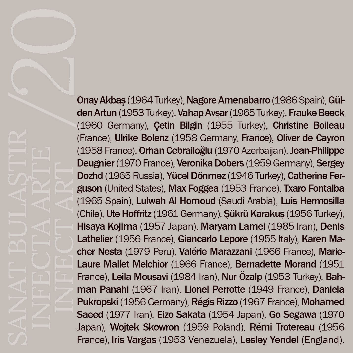 Çalışmalarına İspanya’da devam eden Şükrü Karakuş sergi için, “Virüsün yayılma şeklini örnek alarak hareket ettim ve dünyanın önemli sanat merkezlerinde yaşayan; içtenliğine ve sanatına inandığım dört sanatçıyla hareketi başlattım. Bu sanatçılar ikinci bir dalga oluşturup diğer sanatçılarla bağlantı kurdular. Aynı şekilde üçüncü bir dalga oluştu. Farklı disiplinlerde çalışan sanatçılardan son iki yılda gerçekleştirdikleri bir eserin görselin istedik. Görseller ters yönde akarak bende toplandı. Bir sanatçı inisayitifi olarak kurgulanıp gerçekleştirilen projeye dünyanın dört bir yanından, başlangıçta birbirini tanımayan, aynı sorumluluk ve duyarlılıkta çok değerli 42 sanatçı katılımıyla oluşturuldu.” dedi.