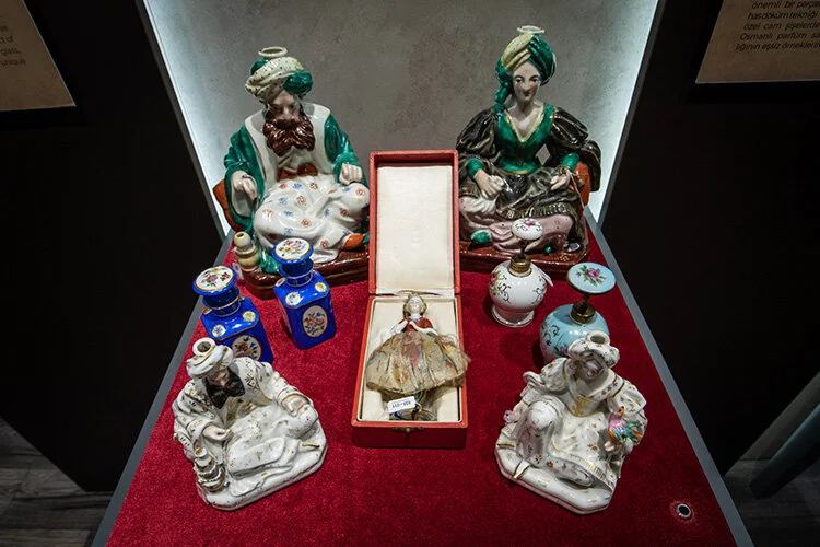 Kantarcı, müze kurmanın ciddi emek ve uzun bir süreç gerektirdiğinin altını çizerek, müzeyi geliştirmeye ve eksikleri tamamlamaya devam ettiklerini ifade etti. Parfüm şişelerinin materyal olarak birçok farklı malzemeden üretildiğini belirten Kantarcı, şunları aktardı: “Bunlardan elimizde olanlara örnek akik ve ametist gibi, çok değerli taşların oyularak yapıldığı şişeler. Bunun yanında geçmiş dönemlerde 300, 400 yıl öncesinde kullanılan koku ham maddelerinin tamamen doğal olması ve bu ham maddelerin de son derece pahalı olması sebebiyle koku şişeleri aynı zamanda bir sanat objesi olarak tasarlanmış. Birer tane, uzun yıllar emek verilerek el işçiliğiyle yapılmış. Bu şişeler incelendiğinde çok değerli süsleme, işleme, oyma, nakış ve altın, zümrüt, yakut gibi çok değerli taşlarla da bezendiğini görüyoruz. Bunlardan da örnekler topladık. Elimizde mesela çok nadir fil dişinden birkaç şişemiz var. Her biri sanat eseri. Yine 300, 400 yıl öncesinde Çin porseleni, Osmanlı pazarı için üretilmiş gülabdanlar var. Osmanlı’nın vazgeçilmezi, bütün dünya müzelerinde aranan gümüş işçilikli buhurdanlıklar da burada var. Bizdeki eserlerin en önemli özelliği ise 2. Mahmut, Abdülmecid ve Sultan Abdülhamid dönemleri özel tuğralarına sahip olmalarıdır.”