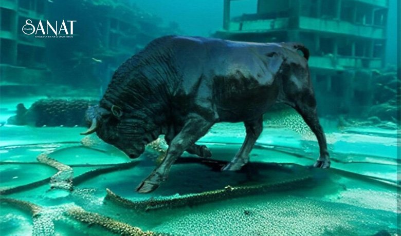 Boğa heykelinin sular altında kalmış hali gerçekçiliğiyle dikkat çekti. İşte viral olan o fotoğraf!
