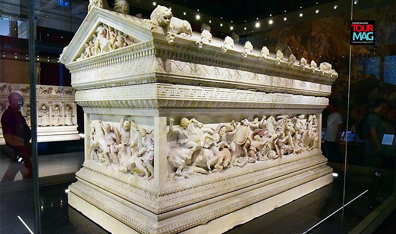 - Arkeoloji Müzesi: Bu bölüm, Mezopotamya, Anadolu, Eski Mısır, Yunan ve Roma medeniyetlerine ait eserleri sergiler. Burada, antik çağlardan kalma büyüleyici heykeller, sikkeler, seramikler ve diğer arkeolojik buluntular yer alır. Bunlar arasında İstanbul’un sembolü haline gelen “Alexander Sarcophagus” gibi önemli eserler bulunur.